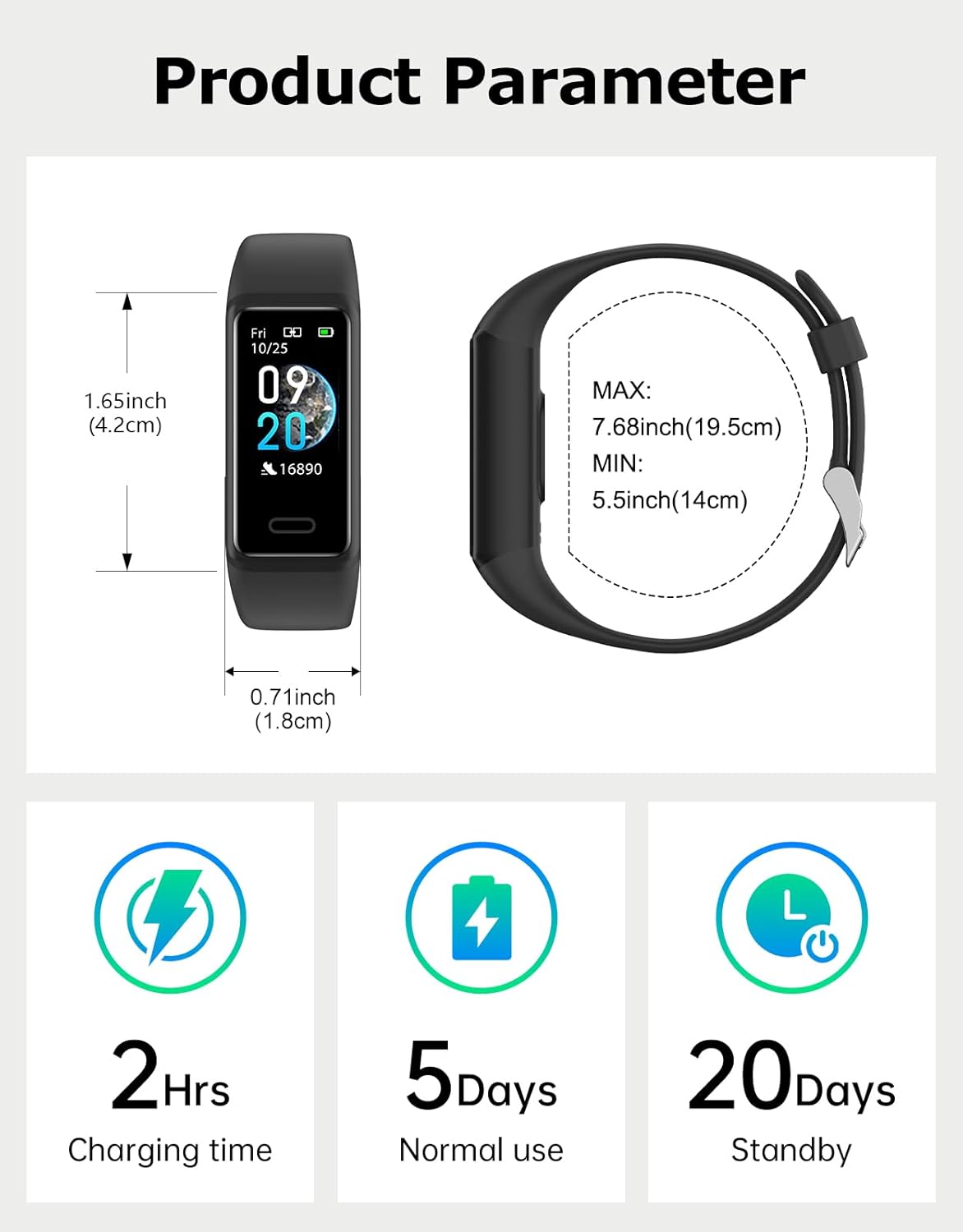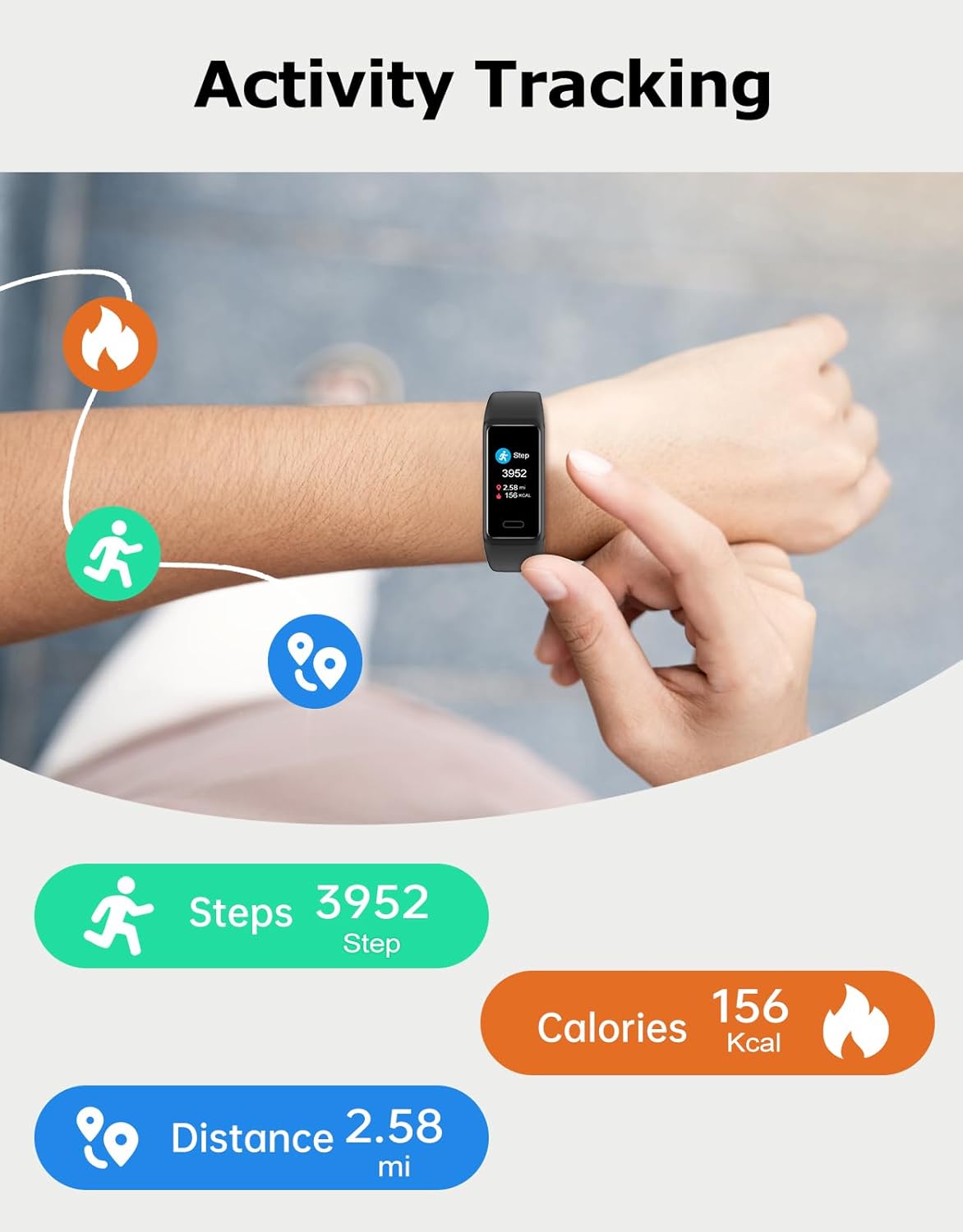 Stay motivated and accountable with the activity tracker, which monitors your progress and encourages you to keep moving throughout the day. Whether you’re hitting the gym, going for a run, or simply staying active at work, this fitness tracker is your reliable partner every step of the way.